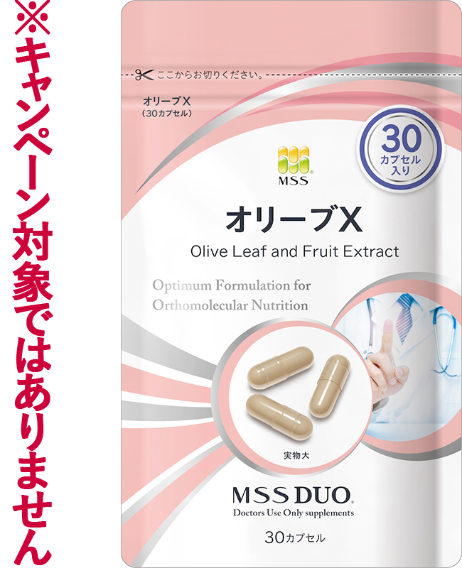 『オリーブX』(30粒)はキャンペーンの対象外です。※対象製品は『オリーブX』(60粒)です。